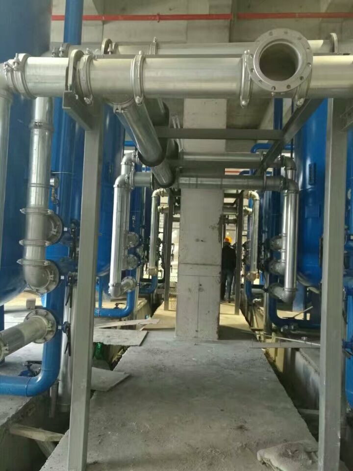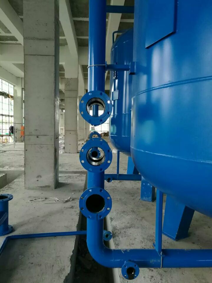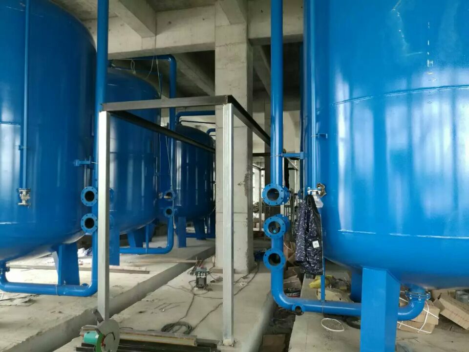 蘇州榮軒環(huán)保設(shè)計的這套自來水預(yù)處理設(shè)備,主要目的是去除原水中的懸浮物、膠體、有機物和余氯等妨礙后續(xù)反滲透運行的雜質(zhì),自來水首先進入砂濾罐:φ2.6m*4.4(總高),垂高2.0m,鋼板厚度10mm,級別Q235,內(nèi)表面襯膠防腐5mm,外表面SA2.5級噴砂除銹至金屬光澤后,噴涂阿克蘇諾貝爾油漆。內(nèi)部填充粗細(xì)粒徑石英沙,石英砂過濾器主要去除水中的懸浮物和膠體,水中大部分懸浮物和膠體在經(jīng)過濾料截留而去除。